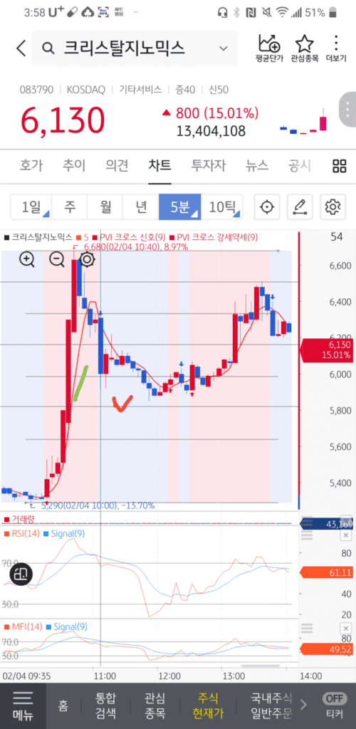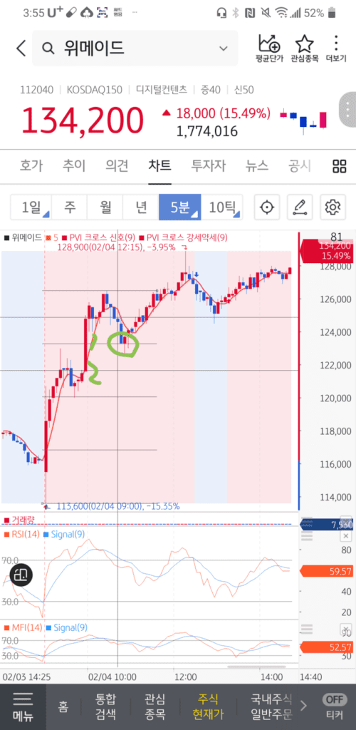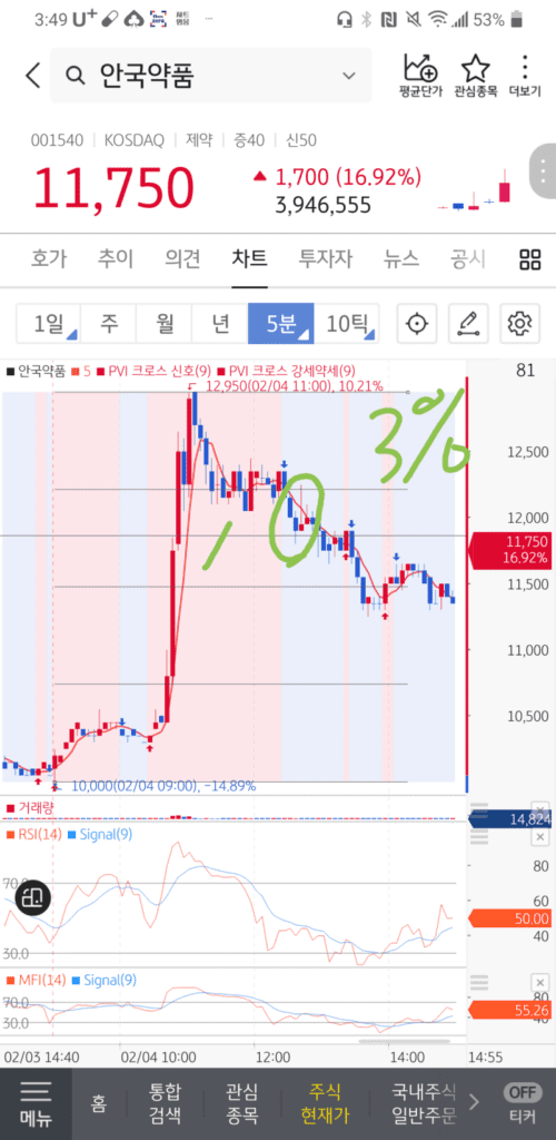 장 초반부터 큰 상승이 나오고 눌림주는게 보이시죠?
