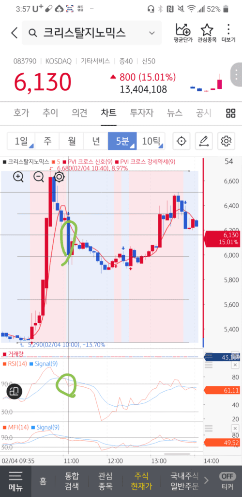 거래대금,거래량도 터지면서 대략 10%이상 상승이 나온 후 눌림이 좋겠죠.이때, 꼭 보셔야 하는게 rsi가 과열권에 들어가야 합니다. 그런 후에 눌림자리를 보시는겁니다.