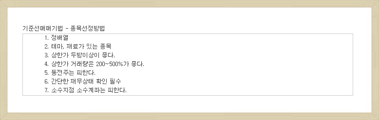 1. 동전주나 시장소외 잡주등은 제외를 시킵니다.
