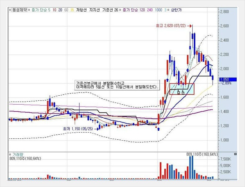 => 저항선인 5이평선과 10평선을 참고하여 분할매도합니다. 수익은 최소 5%이상 7~12%정도가 적당합니다.