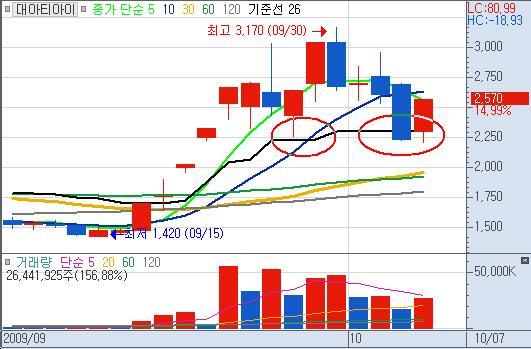 대아티아이는 기준선매매기법에 100% 적합한 종목입니다.