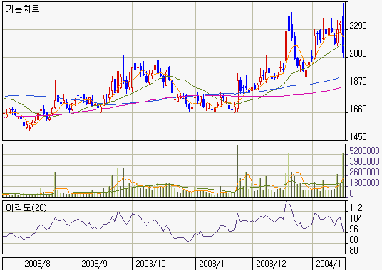 이 챠트에서 보면 10월과 12월에 이격이 104% 이상인데 매도 신호의 신뢰도가 크다. 특히 11월중 매수 신호도 단기적인 효과를 나타냈다고 분석이 된다.