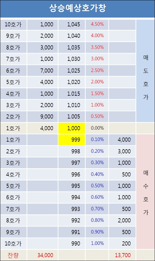 주식 거래 시스템에서 호가창은 다음과 같은 정보를 보여줍니다.